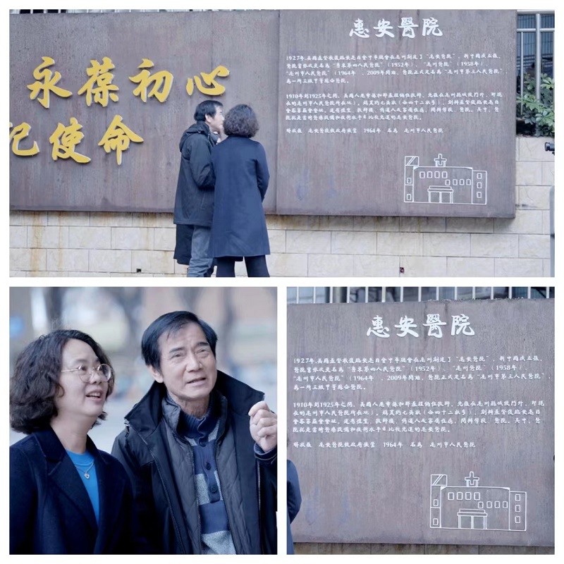 陪着陈超越夫妇来到当年的便门仔(现在的学背街),我们在惠安医院纪念墙前伫立。陈超越指着相隔不远的两棵百年古榕树说:我就出生在这两棵榕树下的医院家属区。