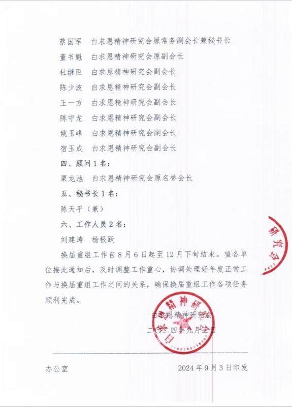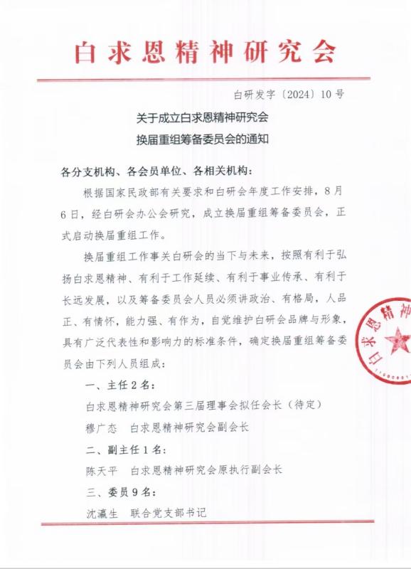 | 关于成立白求恩精神研究会换届重组筹备委员会的通知 | |||||
