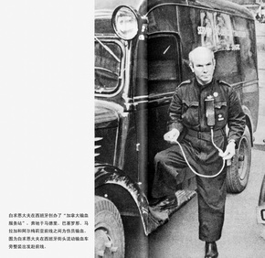 白求恩在西班牙创办了输血站,在流动输血车旁整装待发赴前线