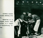 1939年10月24日,白求恩在紧临前线的河北涞源县孙家庄村外小庙为伤员做手术 |