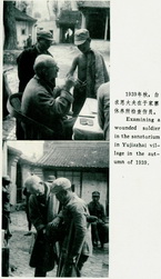1939年秋 白求恩大夫在老姑休养所为即将出院的伤员检查身体。, |