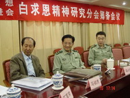 几十年来,曾经与白求恩同志一起战斗过的许多老前辈,卫生界的老同志,为继承和弘扬白求恩精神作出了积极贡献。我们也看到,在白求恩精神哺育下成长起来的一代又一代年轻的医务工作者,在本职岗位上自觉实践白求恩精神,做了大量卓有成效的工作,积累了宝贵的经验。这些都为白求恩精神研究分会成立,奠定了良好的基础。所以我认为,白求恩精神研究分会正式成立,标志着我国研究和弘扬白求恩精神进入了一个新的阶段,为研究白求恩精神创造了平台,为弘扬白求恩精神提供了保障,是一件非常好的事情。军队卫生部门和卫生系统有责任、有义务,重视和支持白求恩精神研究分会的工作。希望全军卫生系统的同志们,积极参加白求恩精神研究分会的各项活动,带头学习和弘扬白求恩精神,以饱满的热情和扎实的工作,更好地为部队官兵服务,为人民群众服务,为建设社会主义和谐社会,做出新的更大的贡献!