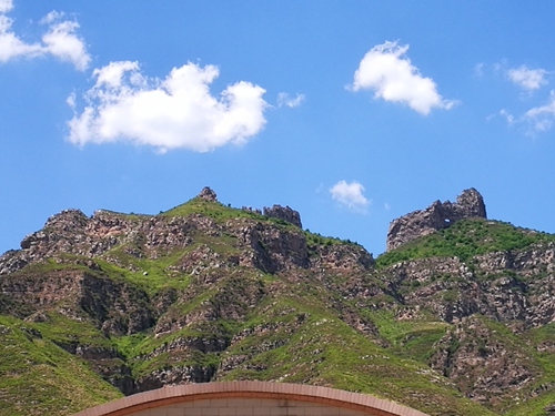 本站讯 山西五台县白求恩纪念馆坐落在五台县耿镇镇松岩口村,纪念馆背靠的山,轮廓酷似形象的“一带一路”景观: 前面是回头的狮子,后面跟着一队牵着骆驼的驼队。狮子恰如中国,正带领世界驼队走向东方(如下图)。