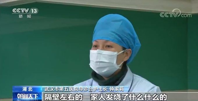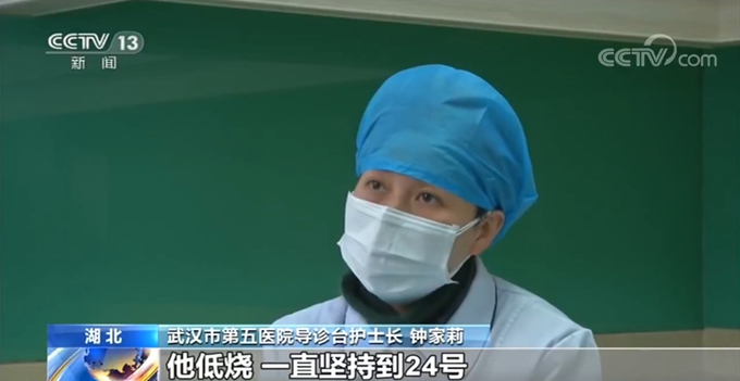 武汉市第五医院导诊台护士长 钟家莉:同事18岁就甲状腺癌,现在才23岁,当时低烧一直坚持到24日,高烧38摄氏度。