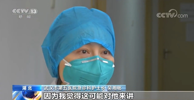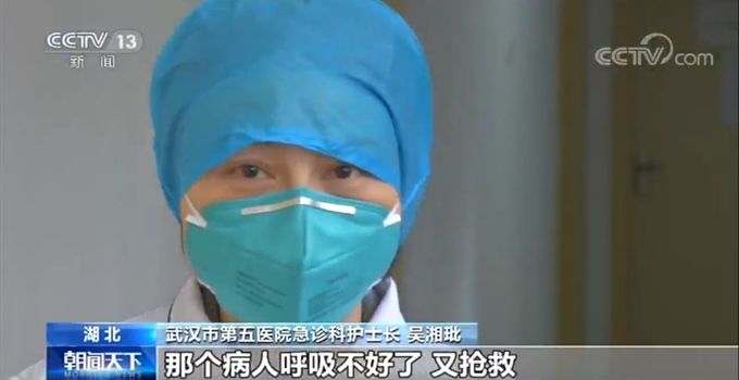 武汉市第五医院急诊科护士长 吴湘玭:工作量比平时多了很多,不是一倍两倍,可以说是10倍的工作量。这个病人呼吸不行了,要抢救,那个病人呼吸不好了,又抢救,你说压力怎可能不大?