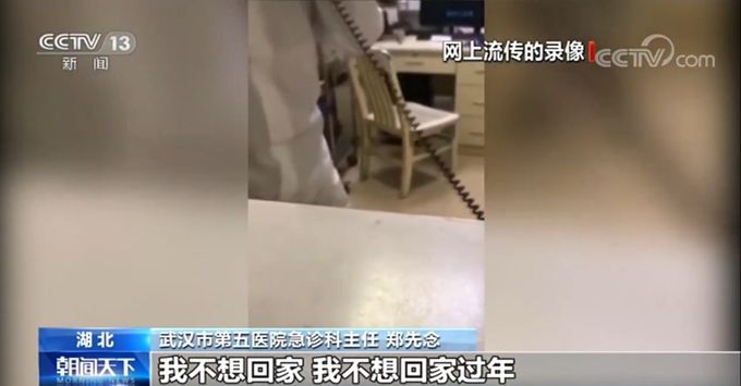 武汉市第五医院急诊科主任 郑先念:我不想回家,我不想回家过年?啊? 这位情绪有些失控的医生,是急诊科的主任郑先念。在场的同事们都理解他为什么发火,那几天,他的压力太大了。