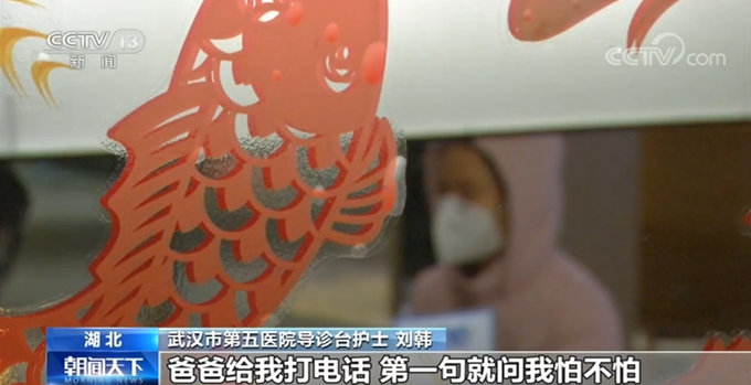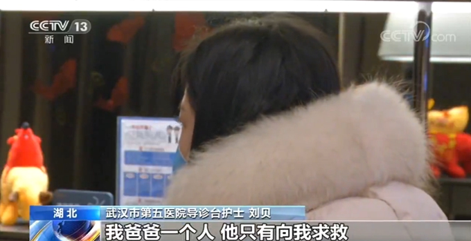 武汉市第五医院导诊台护士 刘韩:我们每天上十几个小时的班 ,爸给我打电话第一句就问我怕不怕,爸爸就跟我说这个事情是我们全中国人都要面对的事情,叫我不要怕,做一个正直的人不能退缩,不能当逃兵,所有的人都在积极面对这个问题,不是我一个人在战斗。爸爸说,千万不要退缩。