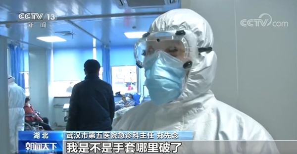 武汉市第五医院急诊科护士长 吴湘玭:你说不怕死,我不知道别人怕不怕,但我可以说我真的不怕。不叫真的不怕,是从未想过这个问题,我们的职业道德让我们在面对病人时,根本没有时间去考虑这个问题,你只有往前冲,没有后退的余地,我哭不是说面对病人,而是想孩子时哭过一次。 第五医院900多名医护人员一直坚守在与病毒搏斗的第一线,截止到2月1日,共接诊发热患者超1万人次。在武汉市全面实行发热市民分级分类就医后,门诊已恢复正常的就诊秩序。在采访中,记者很想见一见几天前在电话里发脾气的那位大夫——郑先念,但他不愿意回忆当时的事情。不过,当他看到我们也来到了抢救室,主动走了过来。 总台央视记者 卞晓妍:你受委屈了。 武汉市第五医院急诊科主任 郑先念:没事没事。我觉得有点丢人吧,这么大个男人。 总台央视记者 卞晓妍:有人告诉我这是全医院最危险的地方,我现在腿都软了,你不怕吗?