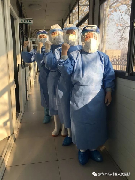“让我来!”穿着防护服的赵飞琴无法用语言跟同事交流,她只能用手示意。采集过程,赵飞琴直接面对男子,他张开嘴配合呼吸,赵飞琴娴熟地取唾液标本,短短几秒钟完成采集。咽拭子结果显示,男子非流感病毒引起的肺部感染。男子的症状、肺部影像都指向了新冠病毒感染。经过马村区人民医院新冠病毒专家组集体讨论,该男子疑似感染新冠病毒。医院立即与全市定点收治医院市第三人民医院联系,安排男子转院治疗。第二天一早,该男子的6名密切接触者被安排来到马村区人民医院进行相关检查。“有危险,让我来吧。”赵飞琴一个人完成了对6名密切接触者的咽拭子采集。而她这样做的想法很简单:采集过程有危险,不要再让其他同事担风险了。
