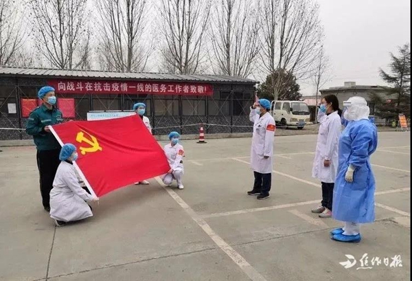 本站讯(焦作日报 2月有27日报道)2月24日上午,在河南省焦作市马村区人民医院发热门诊楼前,一场特殊的入党仪式正在进行,奋战在该院发热门诊的全国第三届“白求恩式好医生”赵飞琴和另一位青年医师赵婷婷火线入党。该院党委书记、院长李武军说:“在马村区人民医院,党组织就是一个堡垒,党员就是一面旗帜,入党成为年轻医护人员的追求。”