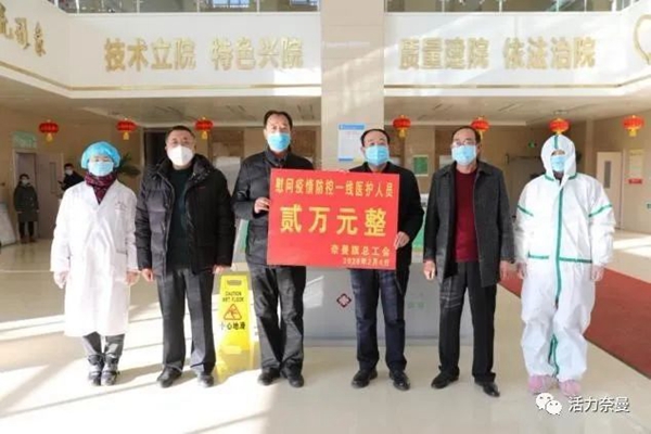旗总工会向我院一线医务人员送来慰问金 从1月21日到2月25日,奈曼旗人民医院共抽调专业技术人员267人,发热门诊、预检分诊共接诊患者29856人次,留观发热患者58人,所有留观发热患者核酸检测均为阴性。在这场抗击新冠肺炎的战役中,奈曼旗人民医院全体医务人员在守护人民群众生命健康安全的考核中交出了合格的答卷。