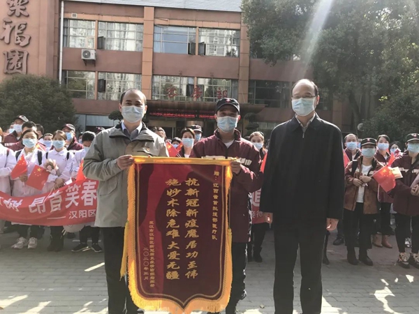 战疫一线|送别战友:江西省首批援鄂医疗队离汉 本站讯(武汉市第五医院3月20日报道)今天,我们在汉阳树下,为并肩战斗了54天的战友送别。江西省首批援鄂医疗队启程回乡。上午9点30分,武汉市汉阳区新冠肺炎疫情防控指挥部为医疗队举行了欢送会,感谢医疗队在抗击疫情战斗的关键时刻,舍小家顾大家,毅然决然地奔赴湖北、驰援武汉、汉阳,汉阳将永远铭记医疗队的付出与牺牲,永远铭记医疗队勇于担当、不辱使命、敢打必胜的精神。