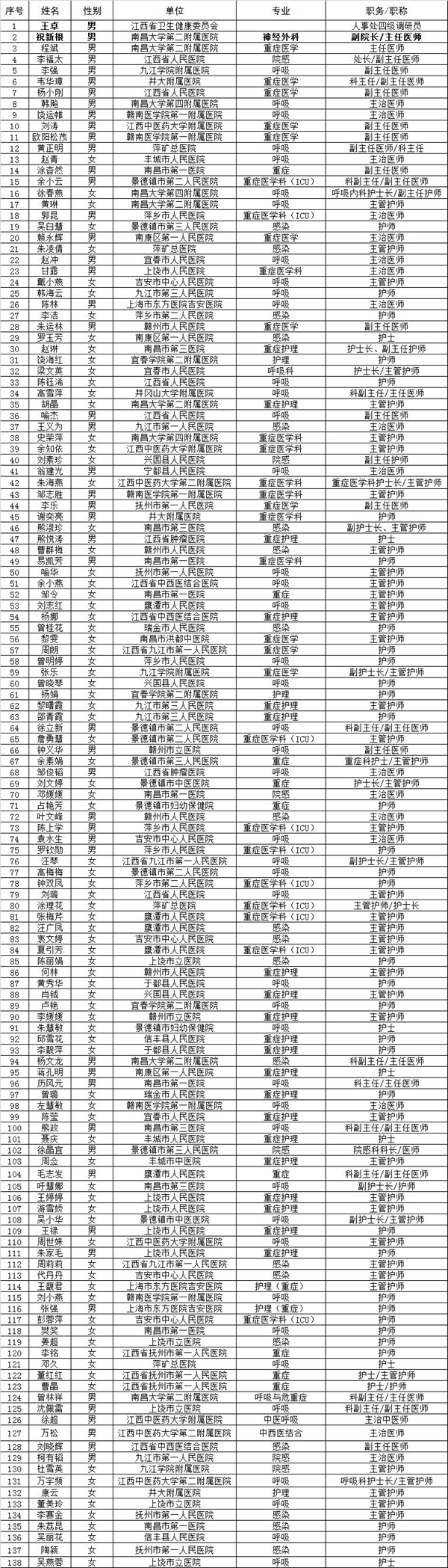 让我们记住江西省首批138人援鄂医疗队的每一个名字!