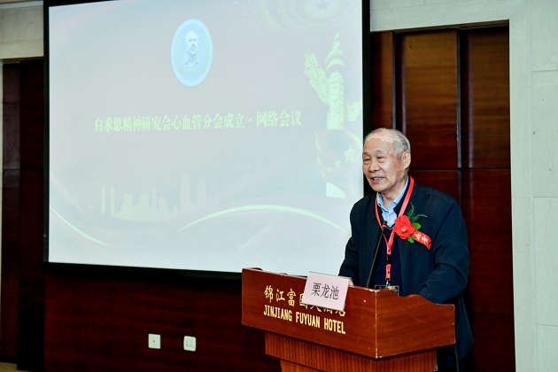 白求恩精神研究会名誉会长栗龙池在会上致辞