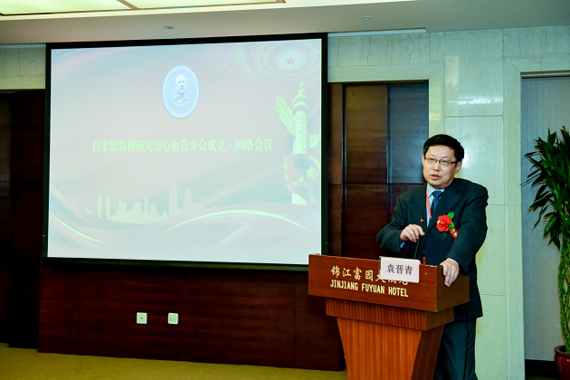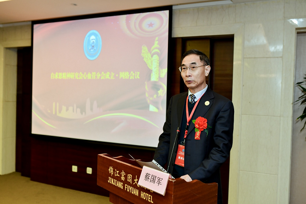 新当选的白求恩精神研究会心血管分会会长袁晋青作表态性发言