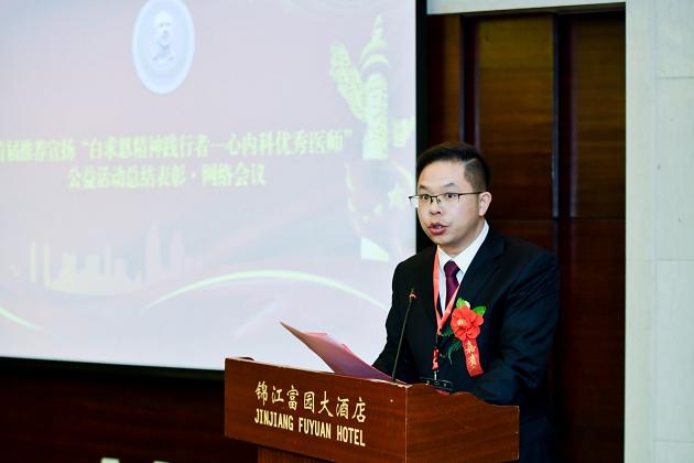 会议第一阶段举行了首届推荐宣扬”白求恩精神践行者—心内科优秀医师”公益活动总结表彰活动。首届推荐宣扬”白求恩精神践行者—心内科优秀医师”公益活动由白求恩精神研究会指导,白求恩精神研究会医学科技创新分会与《学习白求恩杂志社》共同主办,历时将近一年,覆盖全国心内科医师开展的学习白求恩精神公益活动。