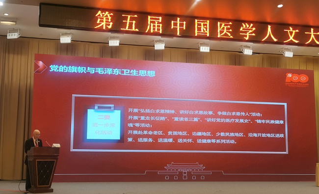 白研会等共同主办的〝第五届中国医学人文大会〞在京圆满落幕本会讯 2021年10月17日下午,由白求恩精神研究会及中国医师协会、中国医师协会人文医学专委会、《中国医学人文》杂志共同主办的〝第五届中国医学人文大会〞在北京圆满幕落。大会围绕“百年华诞同筑梦 医患担当践初心”这一主题,将白求恩精神这一医学人文核心内容,贯穿于同步展开的百年名院、书香医院、安宁守护与生命文化、叙事医学、赤脚医生精神和肿瘤心理社会支持等6个平行论坛之中,取得了丰硕的医学人文成果。