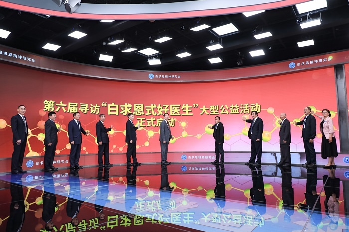 同时,大会宣布正式启动第六届寻访“白求恩式好医生” 活动,与会相关领导和活动合作单位代表上台共同按动活动仪式启动球。