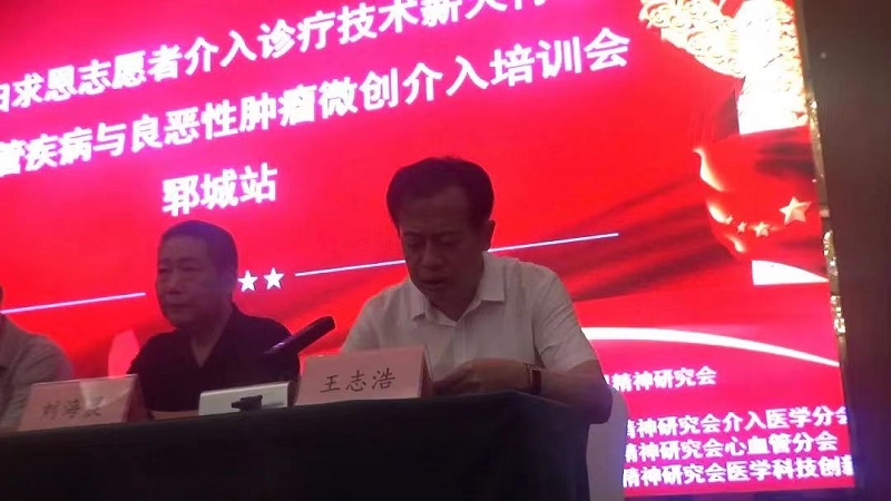 王志浩致欢迎辞 作为东道主,郓城县中医医院党委书记、院长王志浩在致辞中表示,我院有幸与中国白求恩精神研究会介入医学分会、郑州大学介入治疗研究所建立战略合作关系,这是有效解决人民群众“看病难、看病贵”的一项举措,让郓城县人民免去舟车劳顿外出看病的麻烦,在家门口就能花更少的钱享受到权威专家的医疗服务。为此,我代表医院,向中国白求恩精神研究会、郑州大学介入治疗研究所、郑州大学第一附属医院表示衷心的感谢。我院将以本次学术活动为契机,大力发展介入治疗,提升医疗技术水平,为保障全县人民群众生命健康、推动郓城卫生健康事业高质量发展、满足人民群众日益增长的健康需求做出更大的贡献。