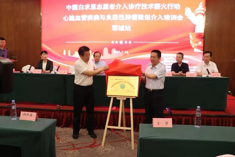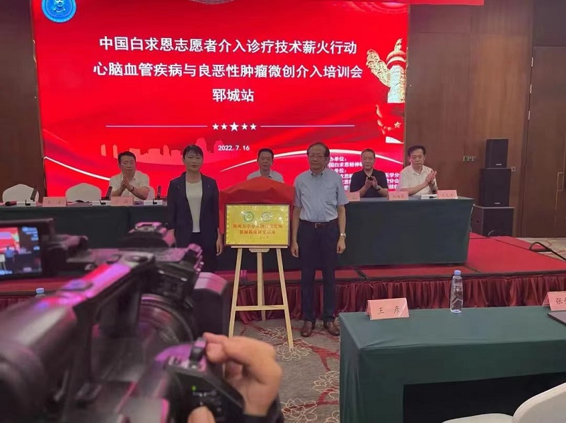 “白求恩志愿者介入诊疗技术薪火行动”山东郓城站启幕 本会讯“大河向东流哇,天上的星星参北斗哇”,2022年7月16日,在“千年古县”、水浒故事发祥地、“中国好汉之乡”山东省郓城县,“中国白求恩志愿者介入诊疗技术薪火行动”山东郓城站——郓城县首届心脑血管疾病与良恶性肿瘤微创介入新技术研讨会、“白求恩志愿者临床介入技术帮扶基层医院”揭牌仪式、“郑州大学介入治疗研究所郓城临床研究基地”揭牌仪式在郓城南湖宾馆隆重举行。 活动严格遵循当地疫情防控要求。