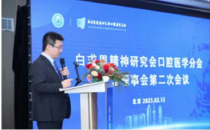 栗龙池名誉会长在讲话中指出,口腔医学分会是在疫情肆虐的重要当口,于2021年4月24日在兰州成立的。近两年来,根据自身特点,做了许多工作,已经有了一个良好的开头。印象比较深的,一是以新成立的分会为平台,积极开展专业学术交流活动,收到了很好的效果。其中,与国际口腔种植学会(ITI)达成战略合作协议,与国内高等院校多次联合举办口腔种植专题经验交流会,并与ITI中国联合开展了讲师培训系列活动。二是注重在会员中广泛开展宣传、学习和弘扬白求恩精神的活动,以此推动和加强医风行风建设。其中,积极参与推荐宣扬“白求恩式好医生”大型社会公益活动,分别向2021年第五届、2022年第六届“白求恩式好医生”活动推荐了自己的先进代表。三是稳步推进和加强组织建设,会员队伍有了新的发展。其中,正在筹建的三个专业学组,工作进展顺利,不仅促进了全国口腔医学工作者的信息和学术交流,进一步凝聚起了国内德才兼备的口腔专家,充实了口腔医学分会力量,同时,也为在更大范围内弘扬白求恩精神,加强医学人文建设,做出了积极努力。四是支持总会工作,圆满承办了白求恩精神研究会理事会、白求恩精神研究会成立25周年纪念活动及第五届推荐宣扬“白求恩式好医生”大型社会公益活动结果发布会。此次活动以线上线下相结合的形式,进行现场直播,得到了参会领导、嘉宾和同志们的充分肯定和高度赞扬,为扩大白研会影响做出了积极贡献。