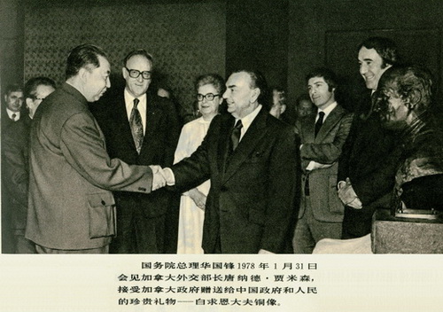 | 华国锋总理会见加拿大外长,接收加拿大政府赠送白求恩铜像 | |||||